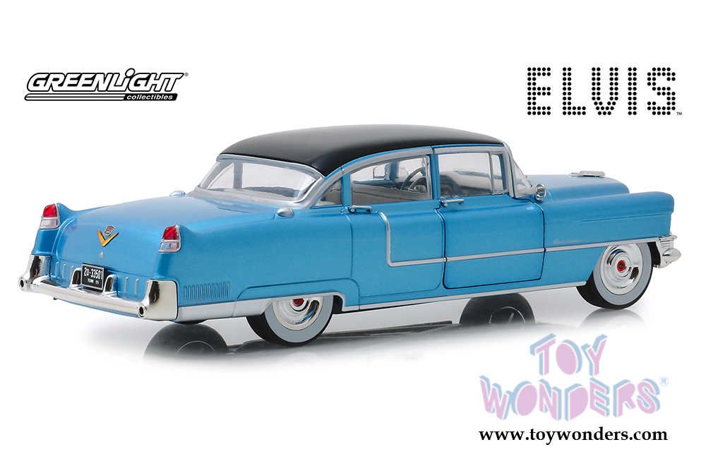 84093 Greenlight Hollywood - Elvis Presley's 1955 Pink Cadillac Fleetwood™ Series 60 Hardtop. 1:24 scale diecast collectible model car. This Cadillac is an 8.25"L x 3"W x 2.25"H die-cast collection car with openable front doors. This '55 Cadillac Fleetwood is manufactured by Green Light. Item 84093 is in BLUE color. Individually packed in a Movie Themed window box. Box size: 9.75"L x 4.75"W x 4.25"H.