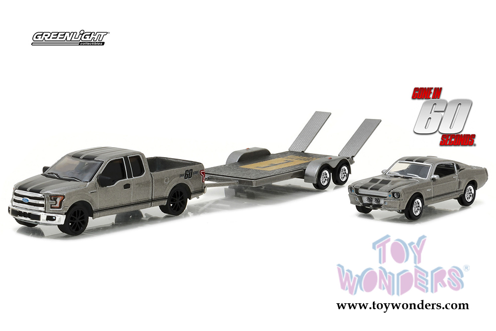 Greenlight - Hollywood Hitch & Tow Series 3 | Eleanor Gone in 60 seconds Ford F-150 with 1967 Custom Ford Mustang on Flatbed Trailer (2015, 1/64 scale diecast model car, Gray) 31030C/24