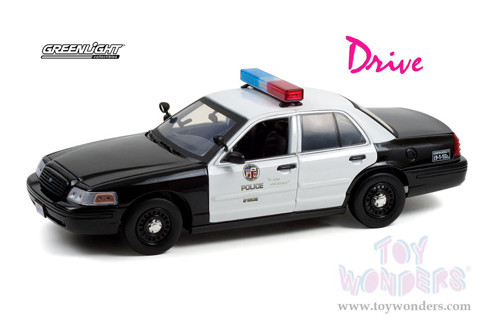 Greenlight Hollywood - Los Angeles Police Department (LAPD) "Drive" (2011) Movie - Ford Crown Victoria Police Interceptor (2001, 1/18 scale diecast model car, Black/White) 13610