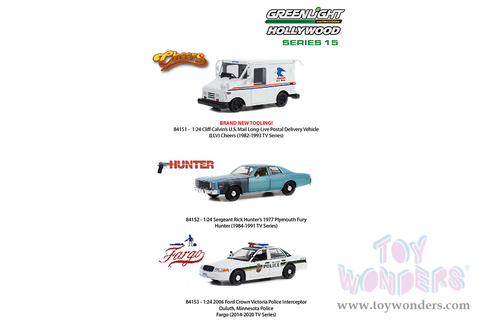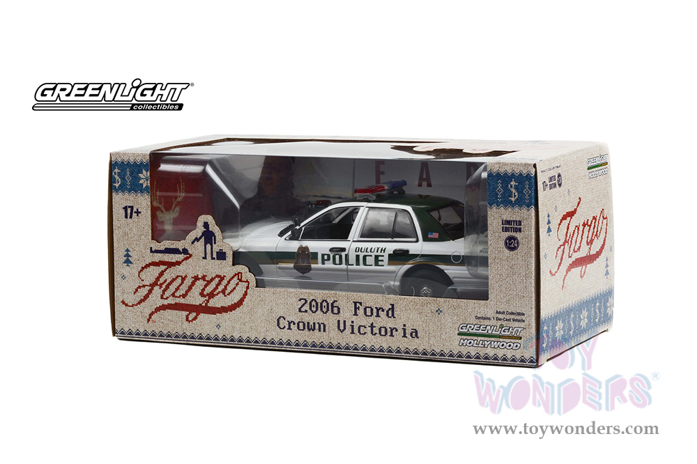 Greenlight Hollywood Series 15 | Ford Crown Victoria Police Interceptor "Duluth Police" (Minnesota) "Fargo" (2006, 1/24 scale diecast model car, White/Green) 84153