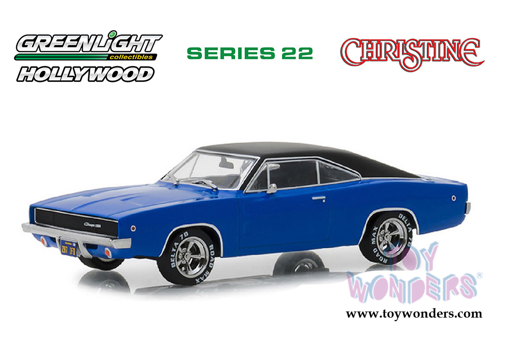 44820E/48 Greenlight Hollywood 22 | Christine (1983 movie) Dennis Guilder's 1968 Dodge Charger. Greenlight has put the love of the silver screen into something slightly smaller with 1:64th scale replicas. Greenlight Hollywood takes iconic film and television vehicles from both the past and present and brings them to life with four-wheeled diecast replicas. 1:64 scale diecast collectible model. This Dodge Charger is a 3" long diecast model car. Each car individually blister carded. Card size: 5.5" x 7.5". Manufactured by Greenlight.