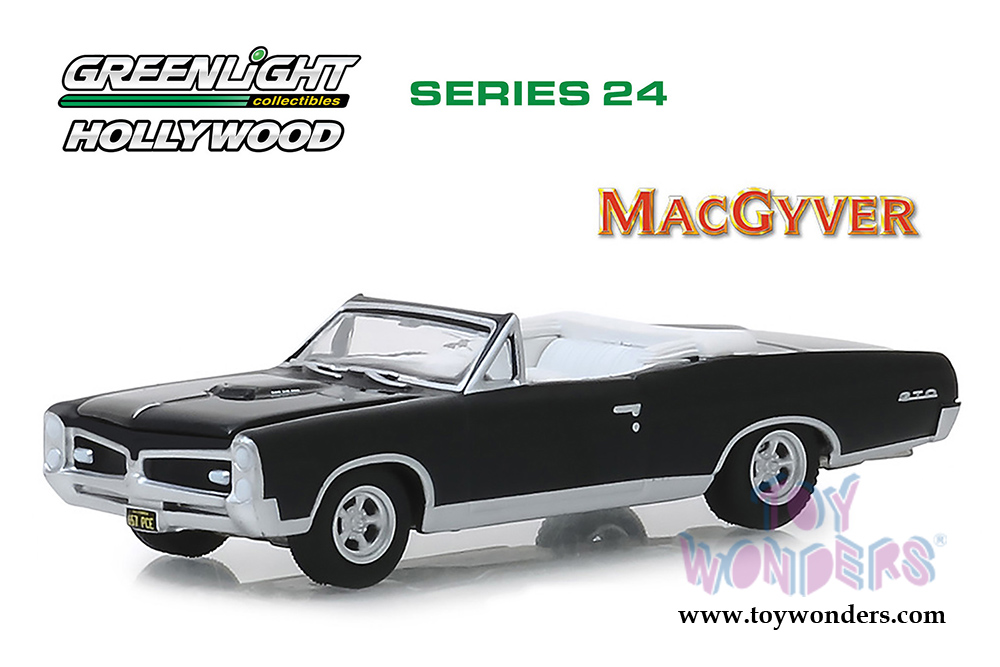 44840F/48 Greenlight - Hollywood Series 24 | 1967 Pontiac GTO Convertible - MacGyver (TV Series, 2016-Current). Greenlight has put the love of the silver screen into something slightly smaller with 1:64th scale replicas. Greenlight Hollywood takes iconic film and television vehicles from both the past and present and brings them to life with four-wheeled diecast replicas. 1:64 scale diecast collectible model. This Pontiac GTO is a 3" long diecast model cars. Each car individually blister carded. Card size: 5.5" x 7.5". Manufactured by Greenlight.