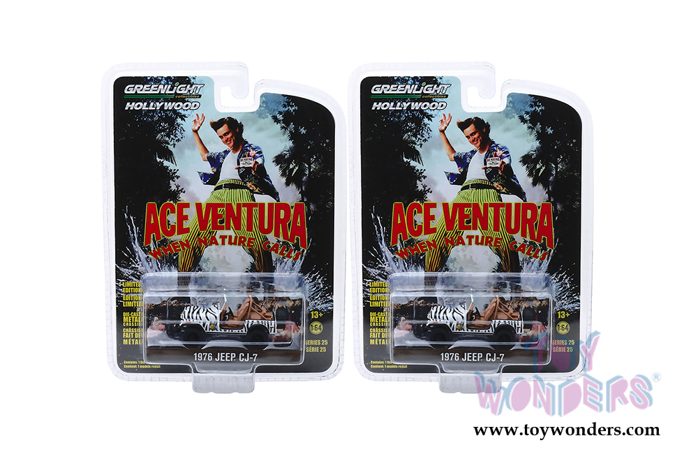 Greenlight - Hollywood Series 25 | Ace Ventura "When Nature Calls" Jeep® CJ-7 (1976, 1/64 scale diecast model car, White/Black) 44850A/48