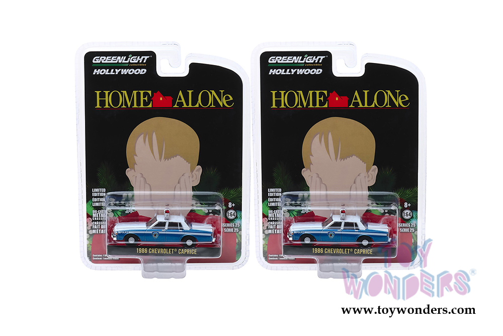 44850E/48 Hollywood Series 25 | Home Alone "Wilmette, Illinois Police" Chevrolet® Caprice (1990) Movie. Greenlight has put the love of the silver screen into something slightly smaller with 1:64th scale replicas. Greenlight Hollywood takes iconic film and television vehicles from both the past and present and brings them to life with four-wheeled diecast replicas. 1:64 scale diecast collectible model. This Chevy® Caprice is a 3" long diecast model car. Each car individually blister carded. Card size: 5.5" x 7.5". Manufactured by Greenlight.