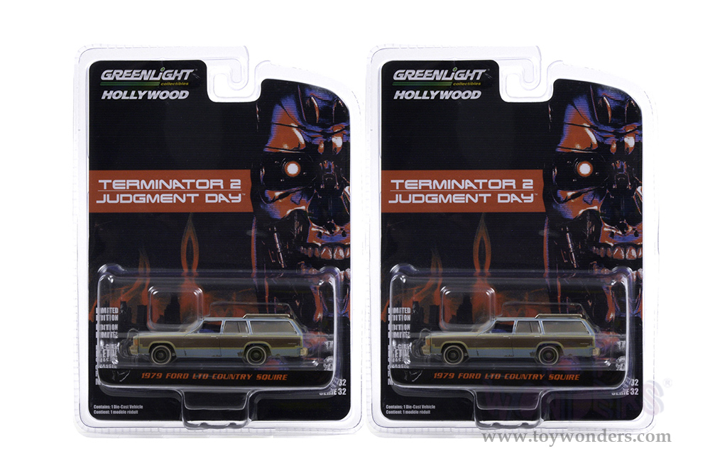 Greenlight - Hollywood Series 32 | Ford LTD Country Squire with Woodgrain Sides (Weathered) "Terminator 2: Judgment Day" (1991) Movie (1979, 1/64 scale diecast model car, Light Blue) 44920C/48