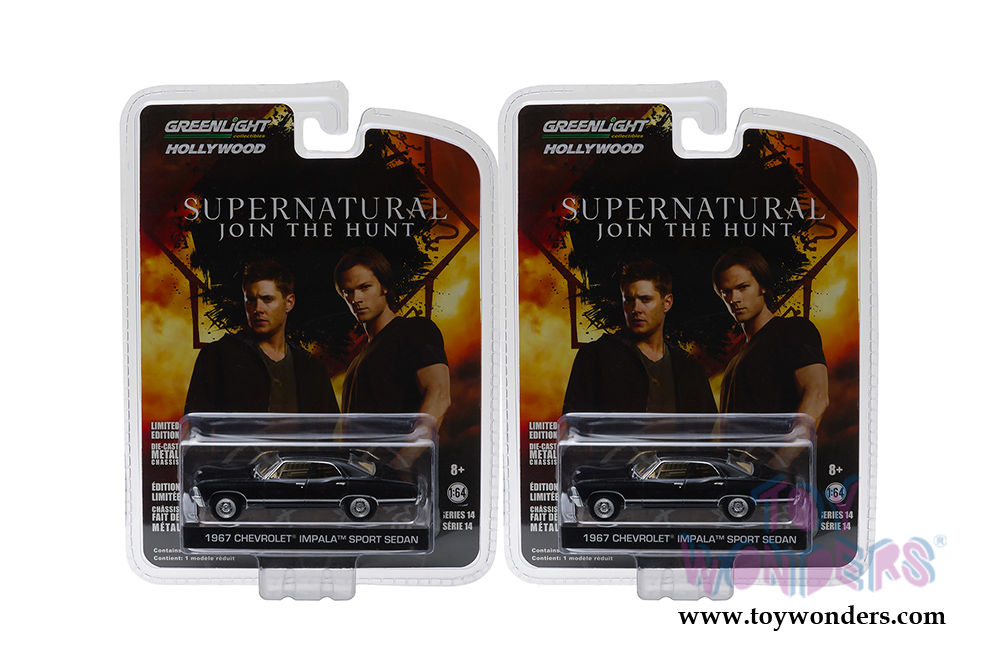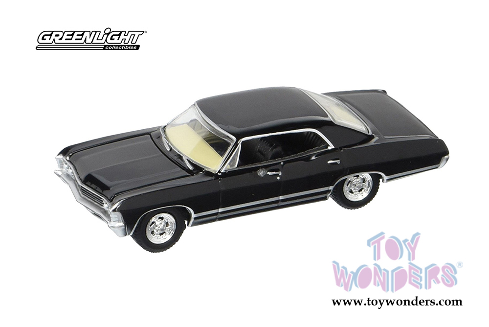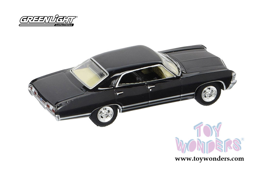 44692/48 Greenlight Hollywood - "Supernatural" TV Series 1967 Chevy® Impala Sport Sedan 1:64 scale. This 1967 Chevrolet® Impala™ 3.25"L diecast model car, each individually blister carded. Manufactured by Greenlight Card size: 5.5" x 7.5" 12 pcs. per inner box. Item 44692/48 is BLACK in color.