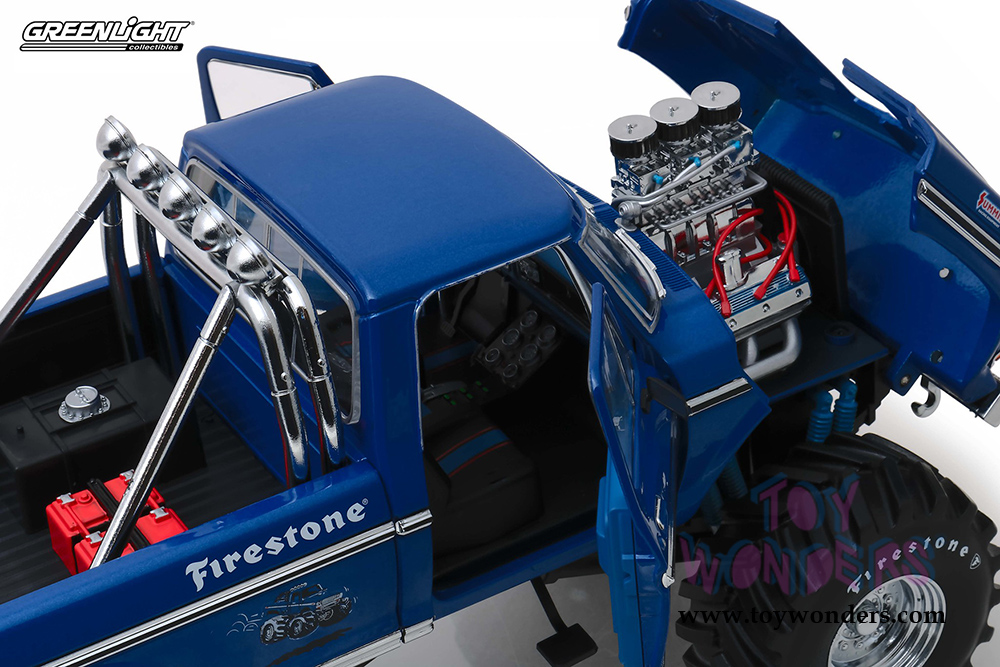 Greenlight - Kings of Crunch Ford F-250 Monster Truck (with 48-inch Tires) - BIGFOOT® #1 The Original Monster Truck (1974, 1/18 scale diecast model car, Blue) 13537