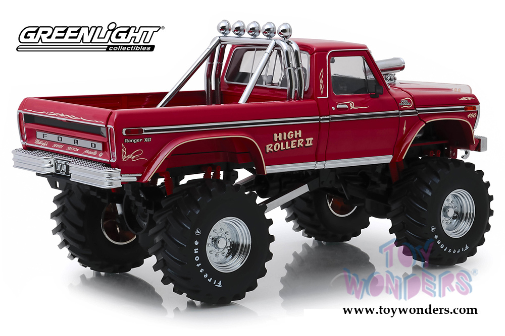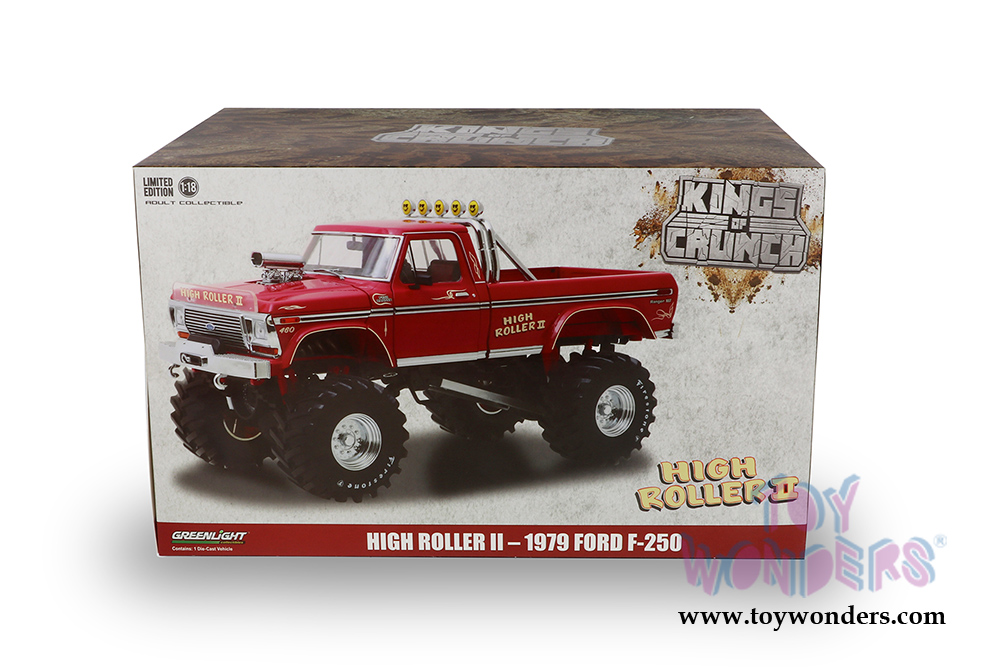 Greenlight - Kings of Crunch Ford F-250 Monster Truck (with 48-inch Tires) - High Roller II (1979, 1/18 scale diecast model car, Red) 13542