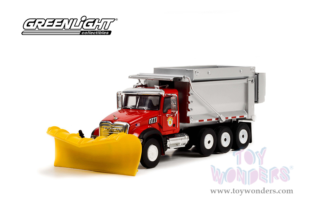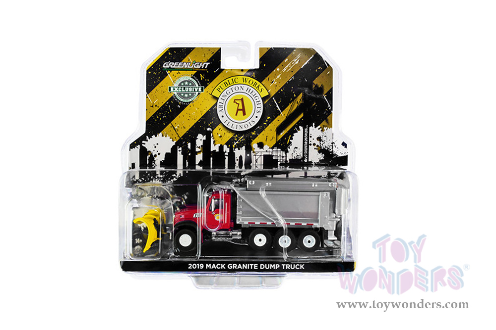 Greenlight - Mack Granite Dump Truck with Snow Plow & Salt Spreader - Arlington Heights, Illinois Public Works (2019, 1/64 scale diecast model car, Red/Silver) 30336/48