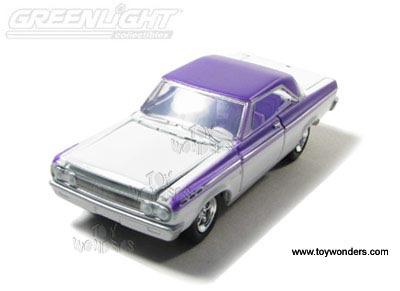 12650/48 Greenlight Muscle Car Garage - MCG Stock & Custom Series 7. 1:64 scale diecast collectible model car. 3" long die cast cars with openable hood. Limited edition. Each car individually blister carded. 12 pcs/inner. Card size: 5.5" x 7.5". These cars are manufactured by Greenlight 12650. GM is a trademark of the General Motors Corporation. Assortment includes: