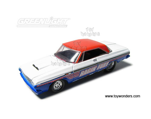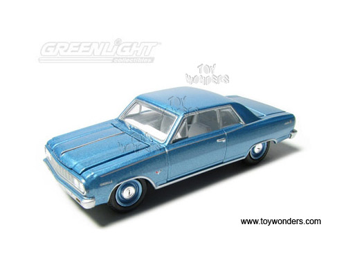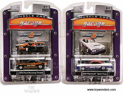12660/48 Greenlight Muscle Car Garage - Street & Strip Series 8. 1:64 scale diecast collectible model car. 3" long die cast cars with openable hood. Limited edition. Each car individually blister carded. 12 pcs/inner. Card size: 5.5" x 7.5". These cars are manufactured by Greenlight. GM is a trademark of the General Motors Corporation. Assortment includes: