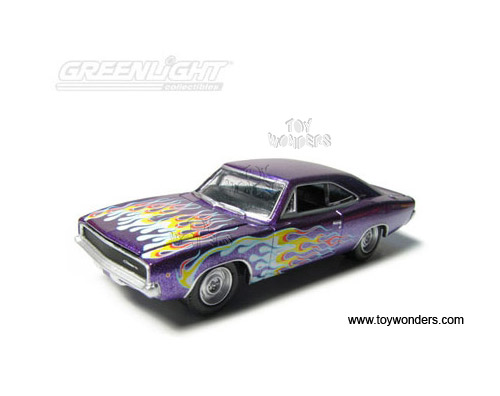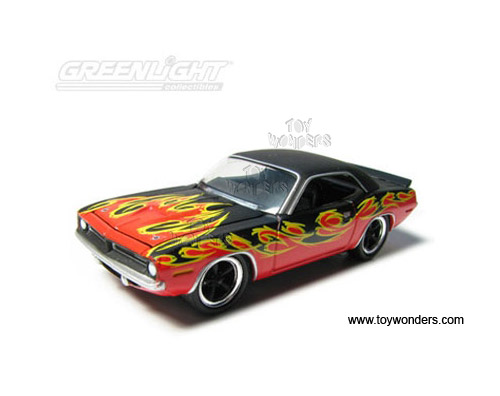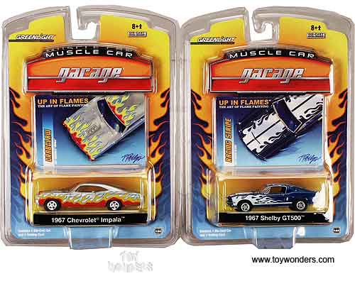 12685/48 Greenlight Muscle Car Garage Up in Flames - Series 1. 1:64 scale diecast collectible model car. 3" long die cast cars with openable hood. Limited edition. Each car individually blister carded. 12 pcs/inner. Card size: 5.5" x 7.5". These cars are manufactured by Greenlight. Assortment includes: