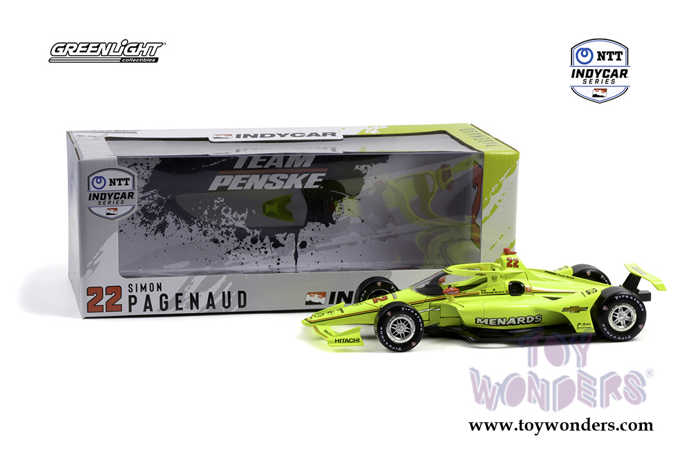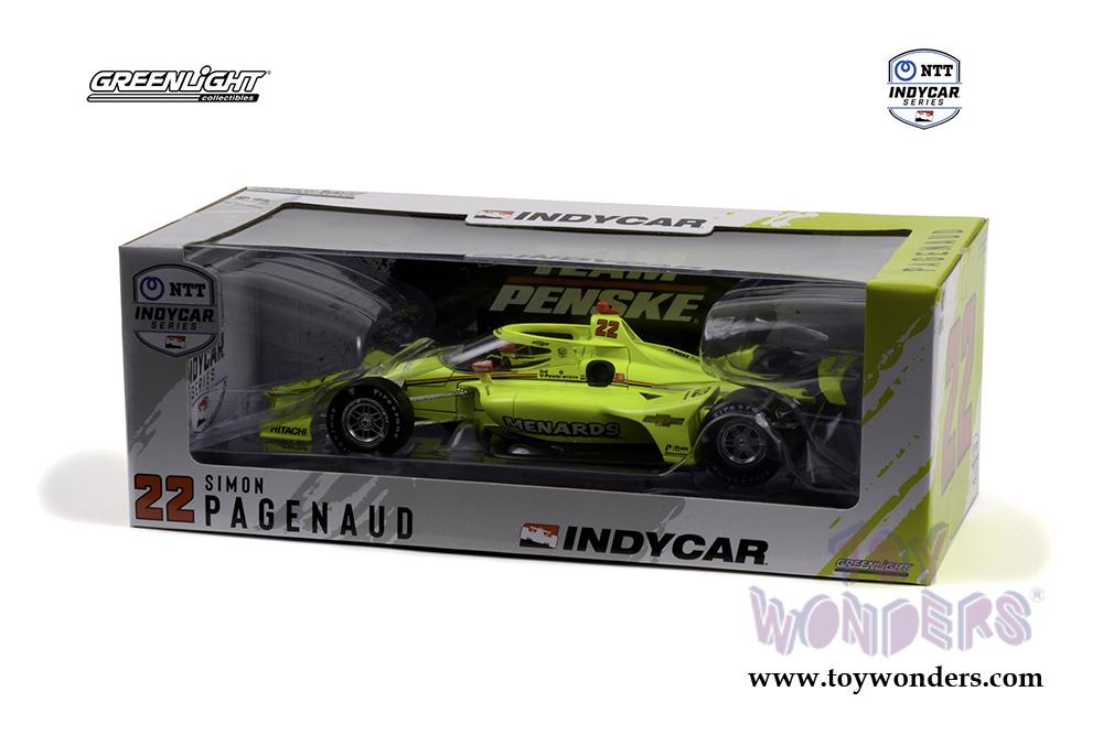 Greenlight - NTT IndyCar Series #22 Simon Pagenaud "Menards" Team Penske (2021, 1/18 scale diecast model car, Yellow) 11108