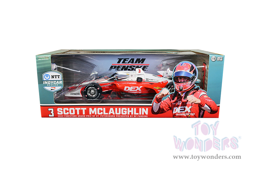 Greenlight - NTT IndyCar Series - #3 Scott McLaughlin / Team Penske, DEX Imaging, Firestone Grand Prix of St. Petersburg First Win (Road Course Configuration) (2022, 1/18 scale diecast model car, Red/White) 11165