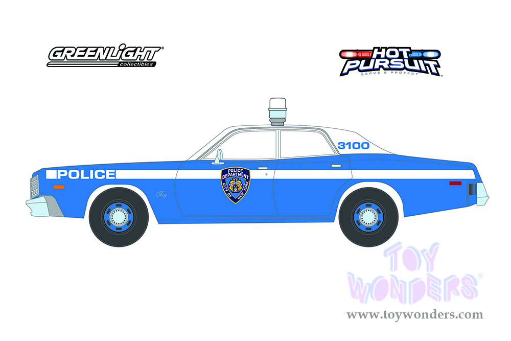 Greenlight - Plymouth Fury New York City Police Department NYPD Hot Pursuit Series 4 (1975, 1/24 scale diecast model car, Light Blue/White) 85542