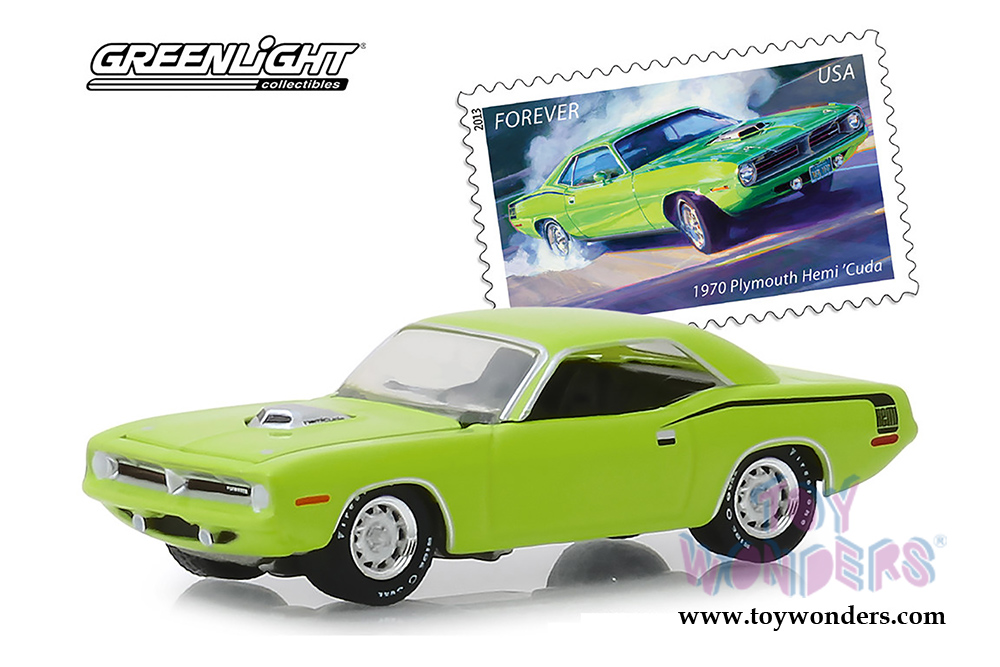 Greenlight - Plymouth HEMI® 'Cuda United States Postal Service (USPS®) 2013 Stamps (1970, 1/64 scale diecast model car, Lime Green) 30069/48