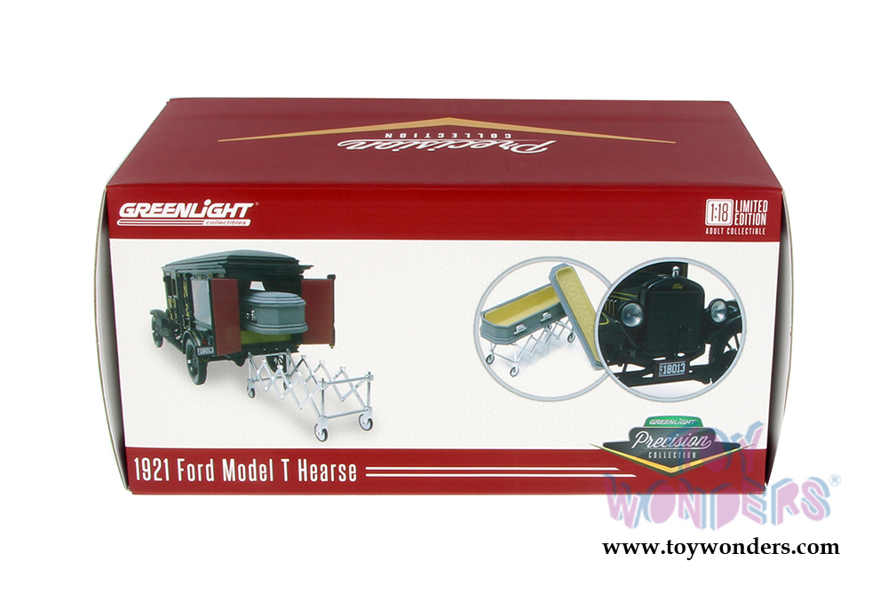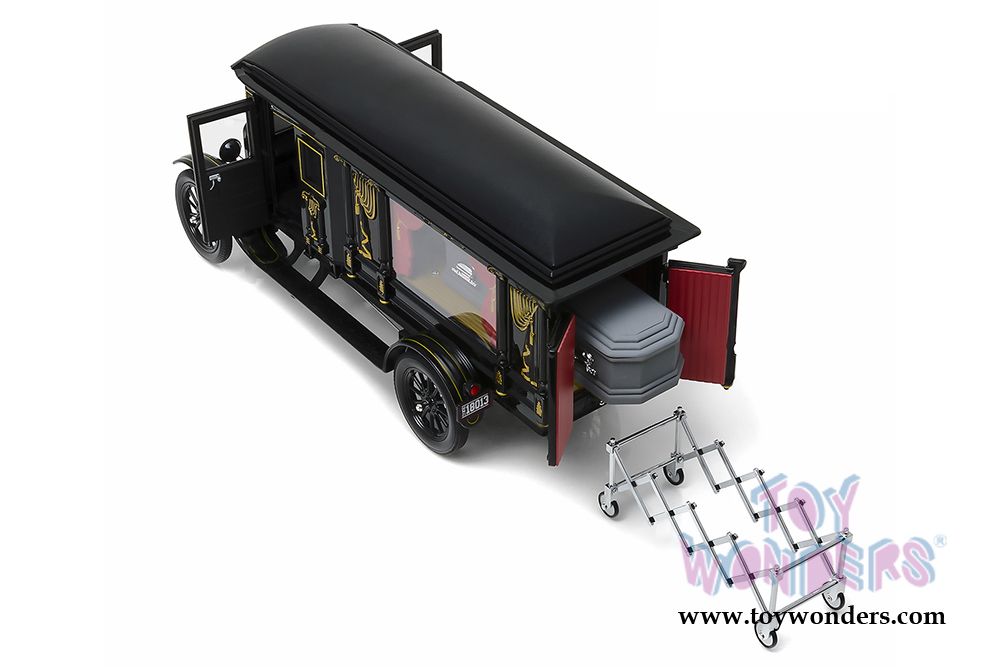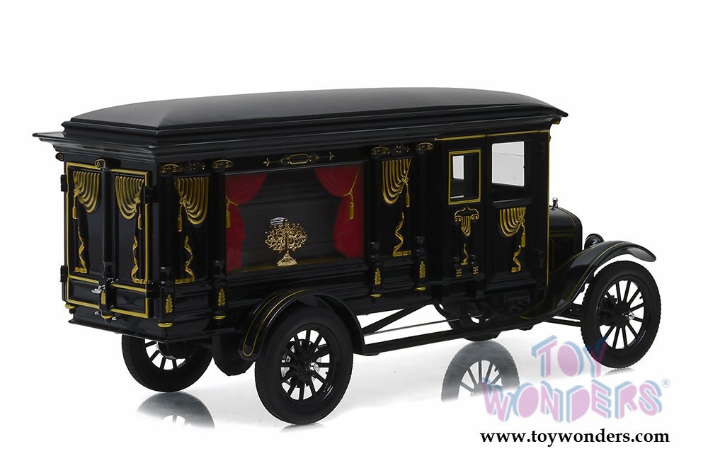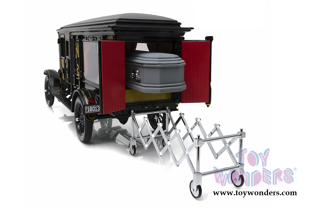 Greenlight Precision Collection - Ford Model T Ornate Carved Hearse with Coffin (1921, 1/18 scale diecast model car, Black) 18013BK