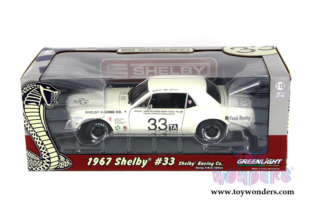 Greenlight Racing Tribute - Ford Shelby Mustang Hard Top #33 John McComb/Jerry Titus (1967, 1/18 scale diecast model car, White) 12935