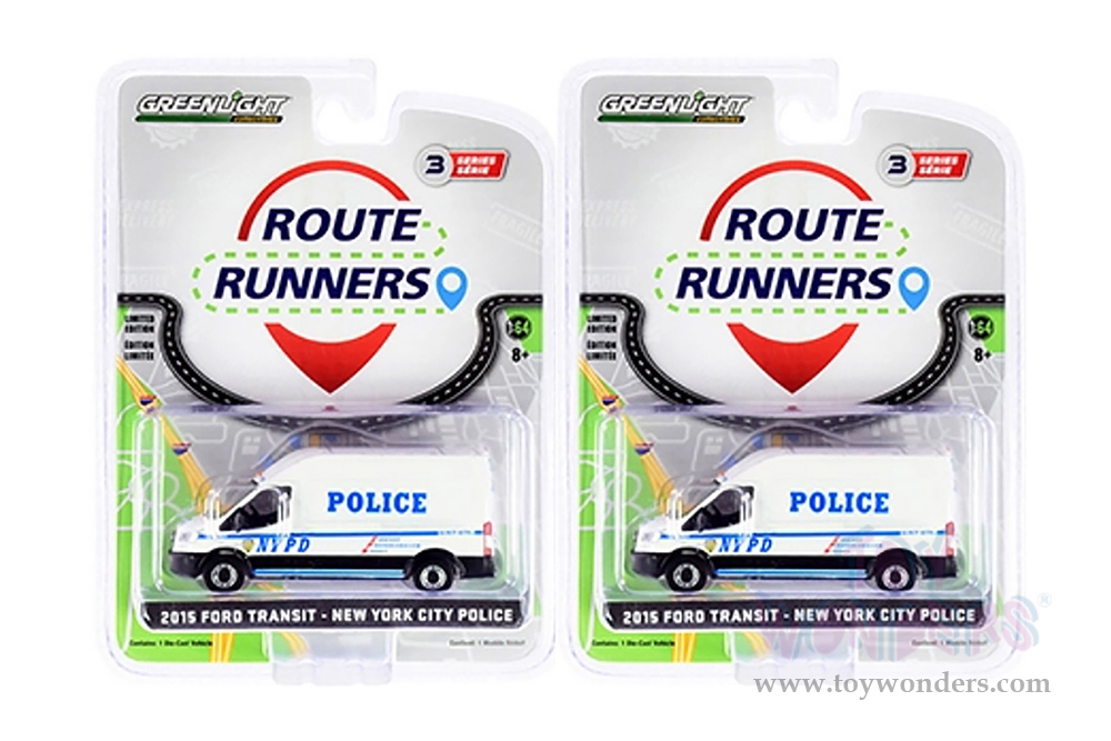 Greenlight - Route Runners Series 3 | Ford Transit LWB High Roof Van "NYPD" (New York City Police Department) (2015, 1/64 scale diecast model car, White) 53030A/48