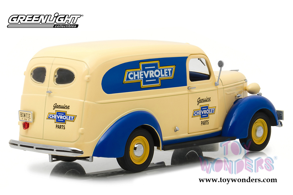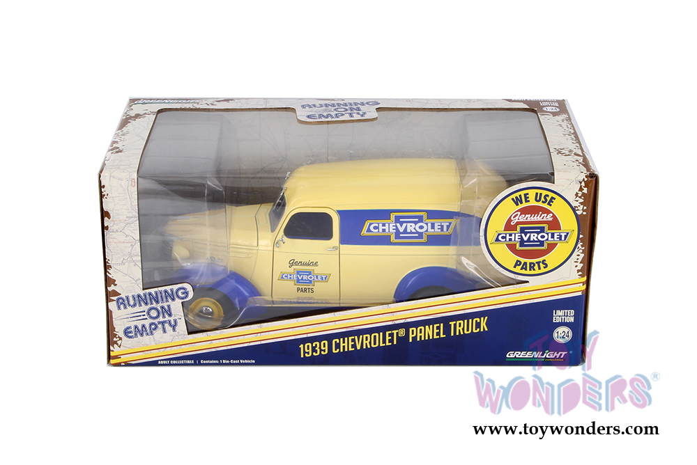 Greenlight - Running on Empty | Genuine Chevrolet® Parts Chevrolet® Panel Truck (1939, 1/24 scale diecast model car, Cream/Blue) 18242