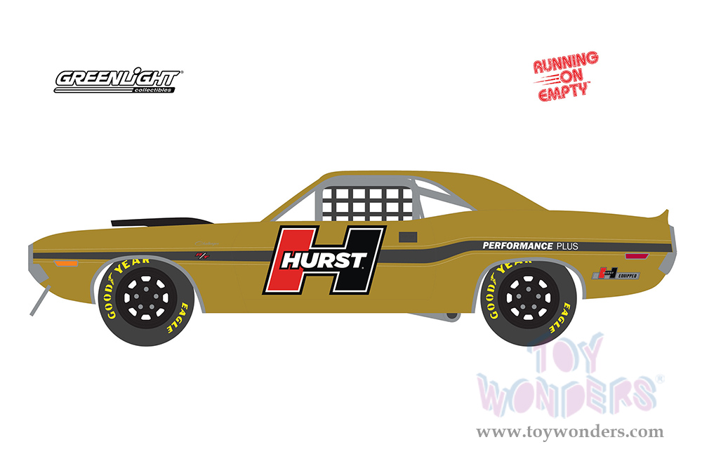 Greenlight - Running on Empty Series 14 | Dodge Challenger R/T "Hurst Performance Plus" (1970, 1/64 scale diecast model car, Gold with Stripes) 41140C/48