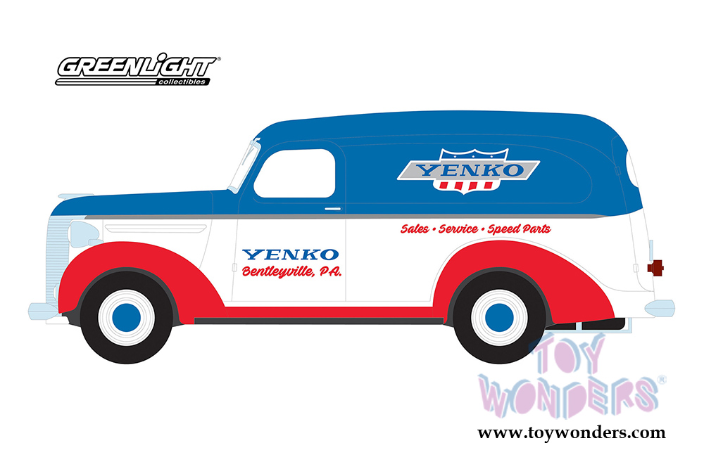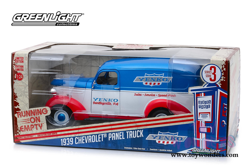 Greenlight - Running on Empty Series 3 | Chevrolet® Panel Truck - YENKO sales and service (1939, 1/24 scale diecast model car, White/Blue/Red) 85041