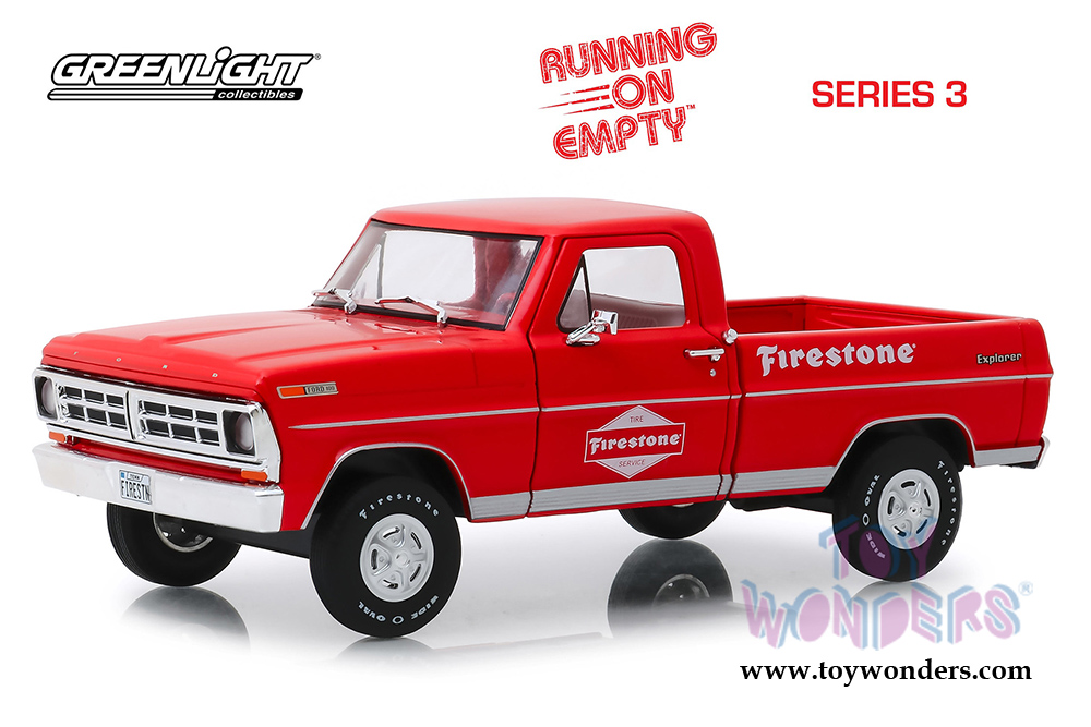 Greenlight - Running on Empty Series 3 | Ford F-100 Pickup Truck - Firestone Tire Service (1971, 1/24 scale diecast model car, Red) 85043