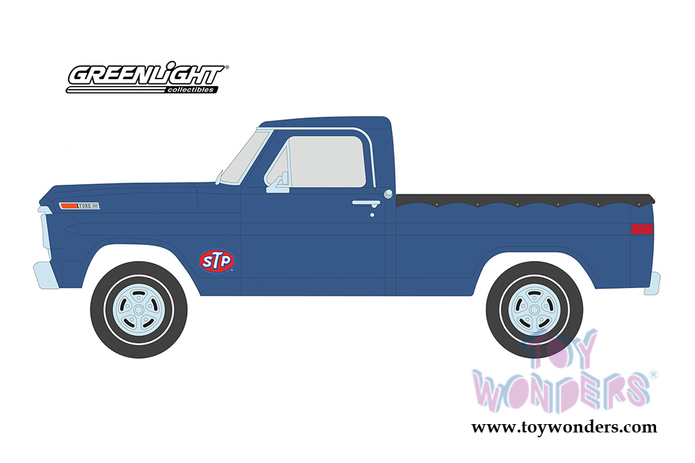 Greenlight - Running on Empty Series 4 | Ford F-100 Pick Up Truck with Bed Cover STP (19670, 1/24 scale diecast model car, Blue) 85053