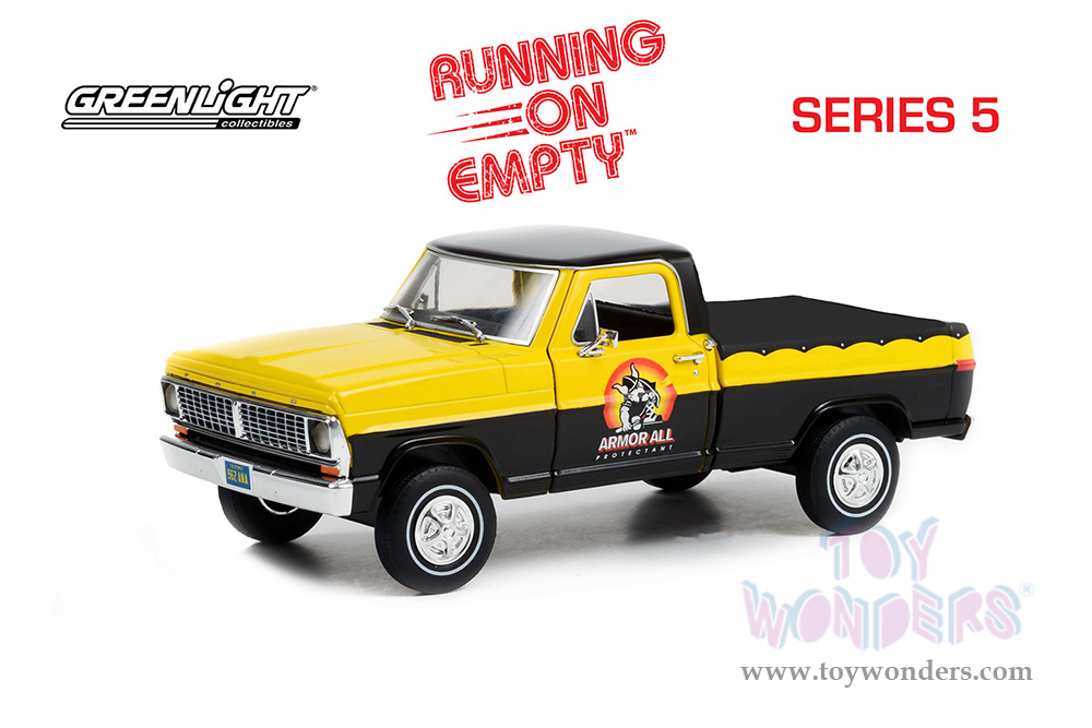 Greenlight - Running on Empty Series 5 | Ford F-100 Pickup Truck Armor All (1970, 1/24 scale diecast model car, Black/Yellow) 85063