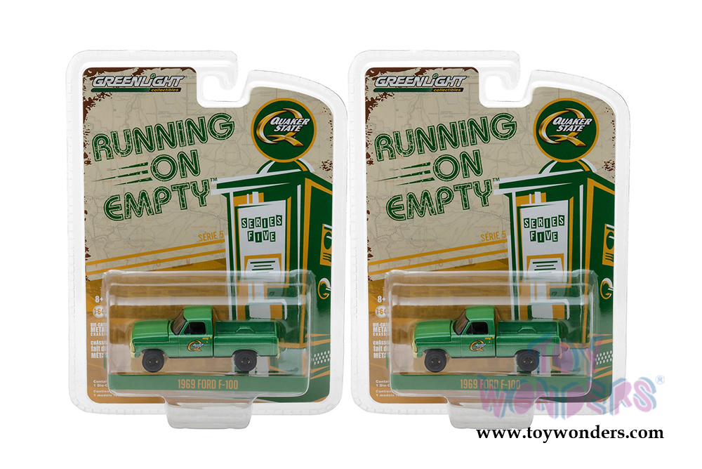 Greenlight - Running on Empty Series 5 | Ford F-100 Pickup Truck Quaker State (1969, 1/64 scale diecast model car, Green) 41050D/48