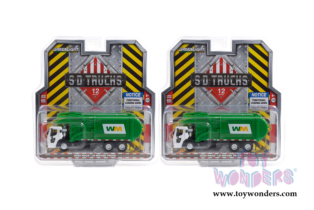 Greenlight - S.D. Trucks Series 12 | Mack® LR Refuse Garbage Truck Waste Management (2020, 1/64 scale diecast model car, White/Green) 45120C/48