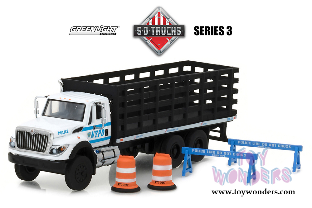Greenlight - S.D. Trucks Series 3 | New York City Police Department (NYPD) - International® WorkStar® Platform Stake Truck (2017, 1/64 scale diecast model car, White/Black) 45030B/48