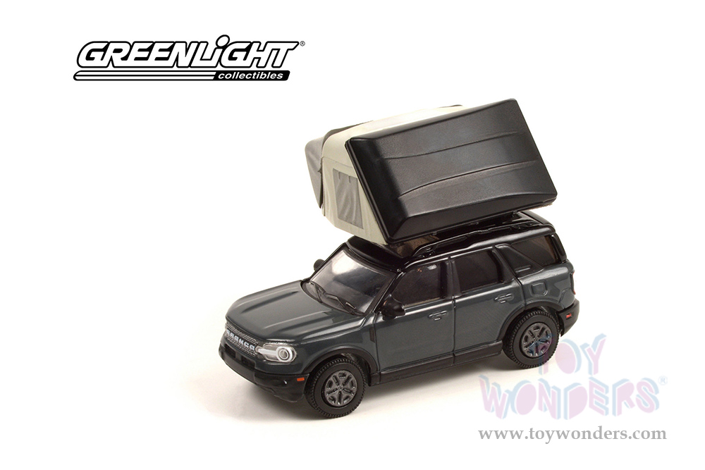 • 2021 Ford Bronco Sport Dark Gray and Black with Modern Rooftop Tent.
