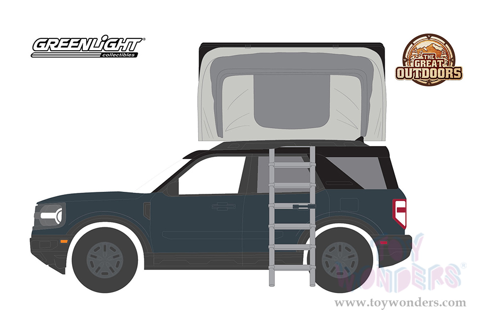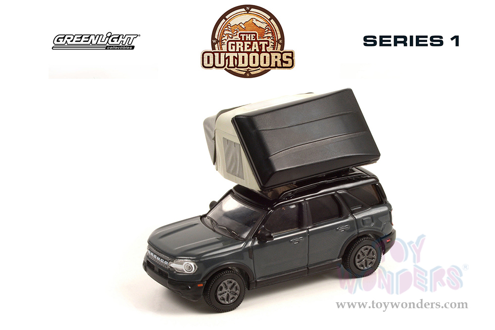 Greenlight - The Great Outdoors Series 1 | Ford Bronco Sport with Modern Rooftop Tent (2021, 1/64 scale diecast model car, Dark Gray/Black) 38010F/48