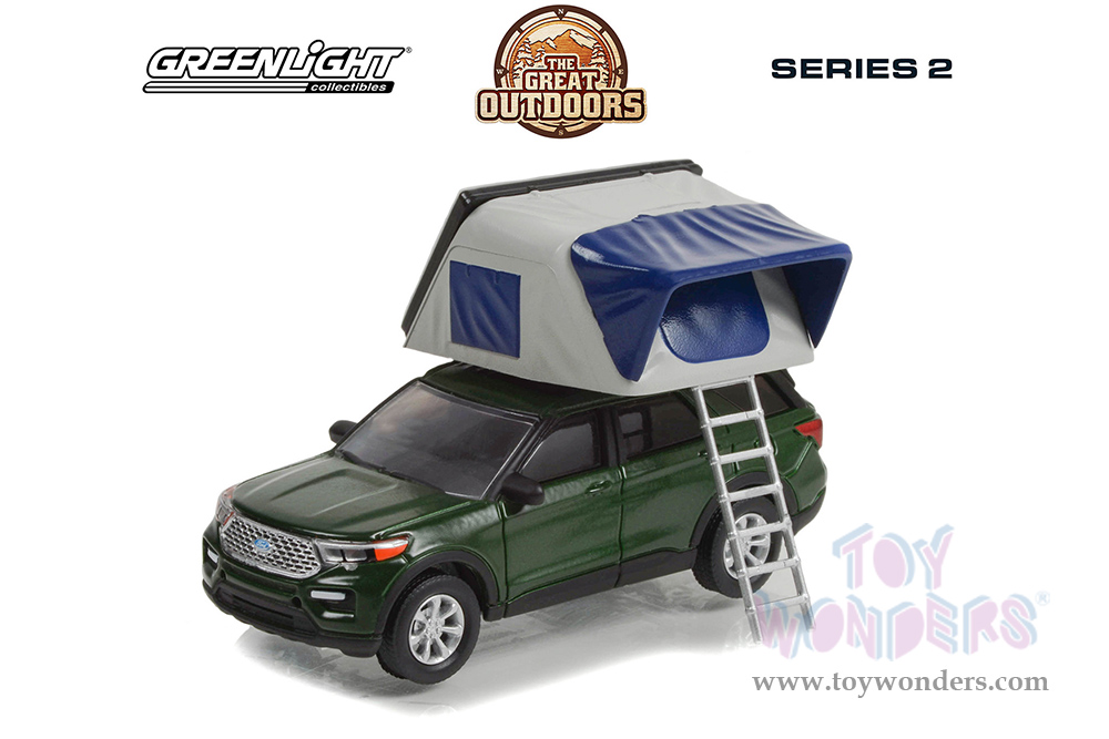 Greenlight - The Great Outdoors Series 2 | Ford Explorer Limited with Modern Rooftop Tent (2022, 1/64 scale diecast model car, Dark Green) 38030F/48