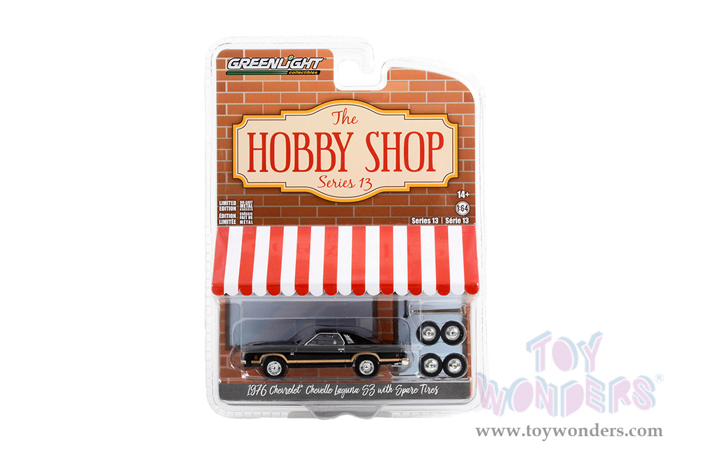 Greenlight - The Hobby Shop Series 13 | Chevrolet® Chevelle Laguna S2 with Spare Tires (1976, 1/64 scale diecast model car, Black with Gold trimming) 97130B/48