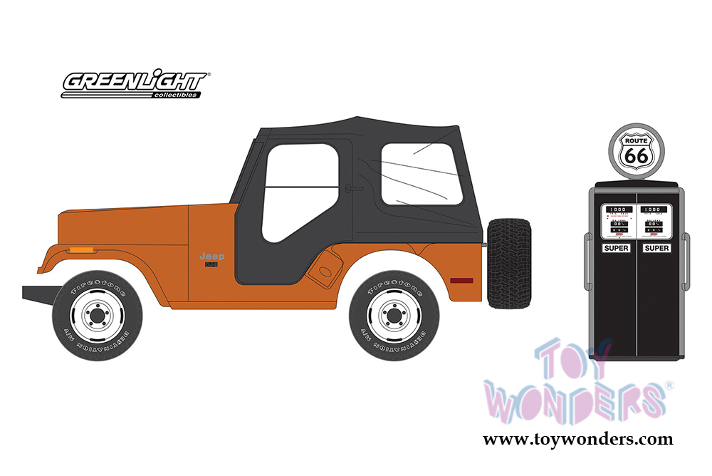 Greenlight - The Hobby Shop Series 5 | Jeep CJ-5 with Vintage Gas Pump (1974, 1/64 scale diecast model car, Copper Metallic) 97050D/48