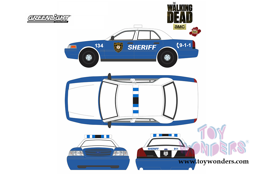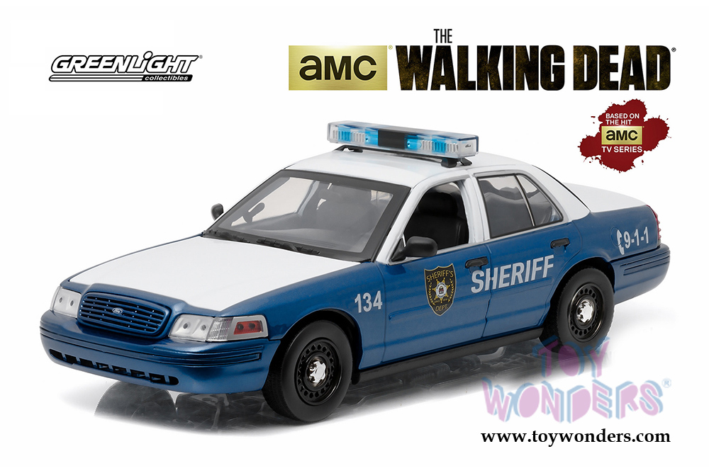 Greenlight - The Walking Dead Ford Crown Victoria Police Interceptor (2001, 1/18 scale diecast model car, White/Blue) 12957