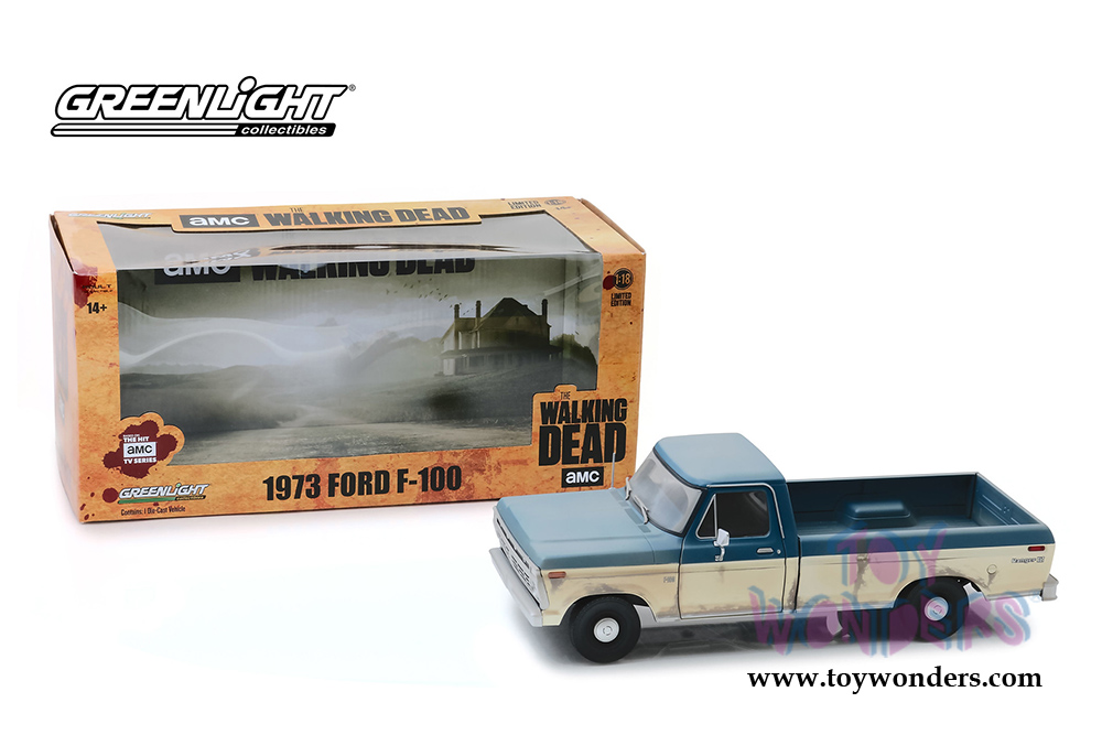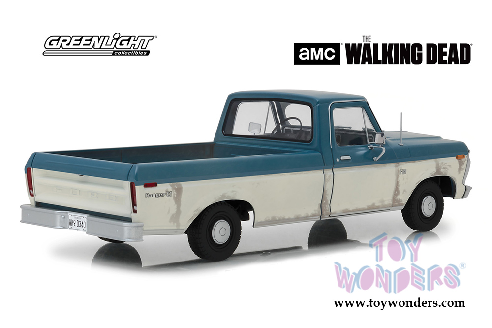 Greenlight - The Walking Dead Ford F-100 Ranger XLT Pickup Truck (Weathered, 1973, 1/18 scale diecast model car, White/Blue) 12956