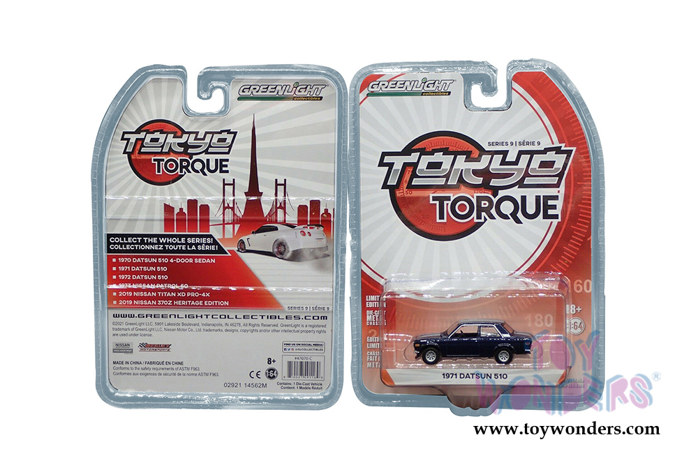 Greenlight - Tokyo Torque Series 9 | Datsun 510 (1971, 1/64 scale diecast model car, Custom Rich Blue) 47070C/48