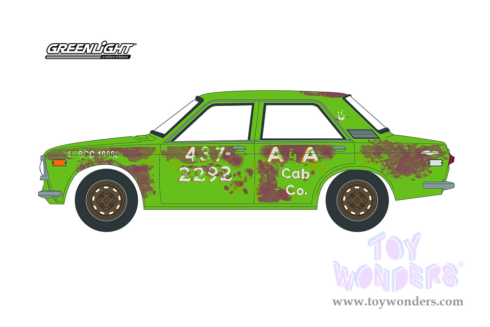 Greenlight - Tokyo Torque Series 9 | Datsun 510 4-Door Sedan - A&A Cab Co. (1970, 1/64 scale diecast model car, Green with Rust) 47070B/48