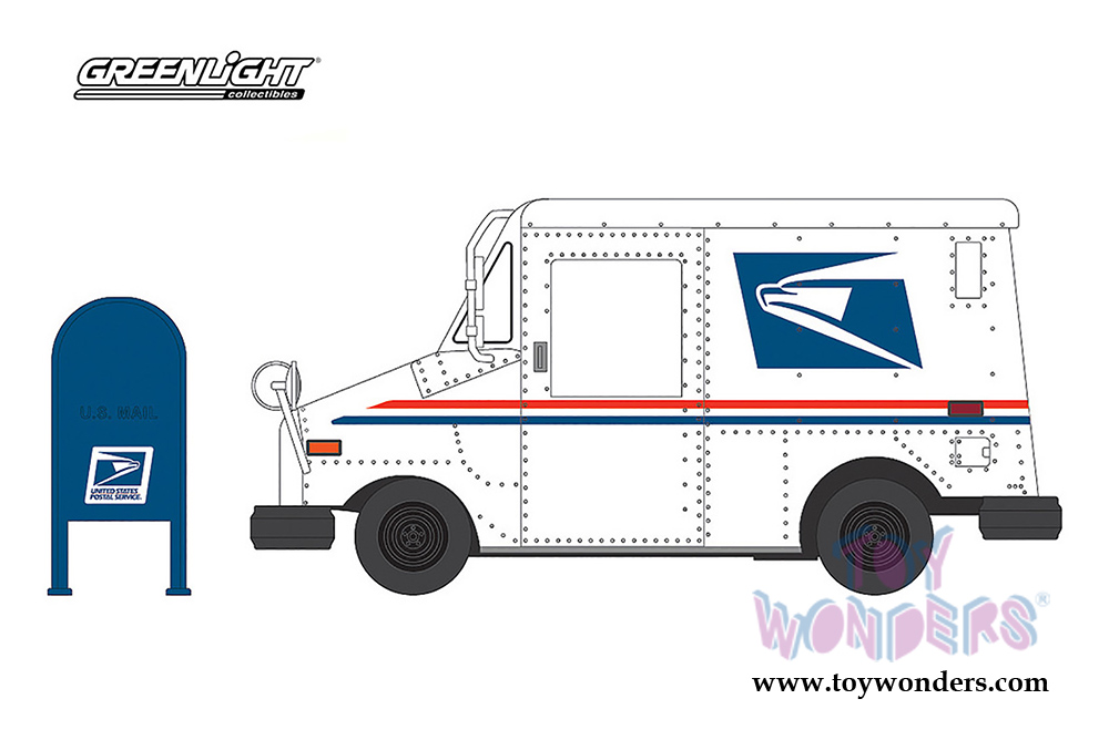 Greenlight - United States Postal Service (USPS) Long Live Postal Mail Delivery Vehicle (LLV) with Mailbox Accessory (1/64 scale diecast model car, White) 29888/48