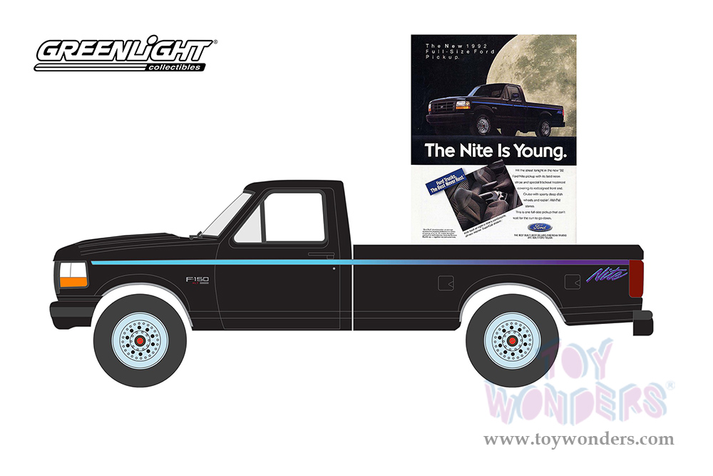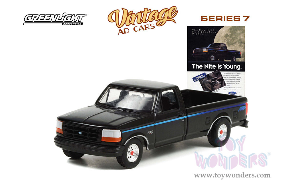 Greenlight - Vintage Ad Cars Series 7 | Ford F-150 Nite Edition "The Nite Is Young” (1992, 1/64 scale diecast model car, Black) 39100F/48