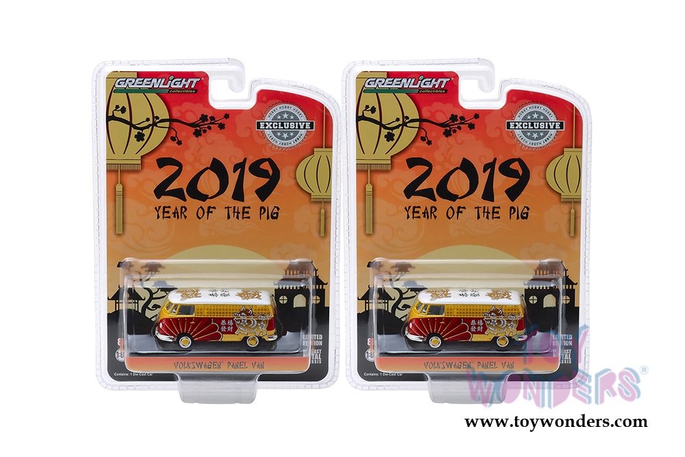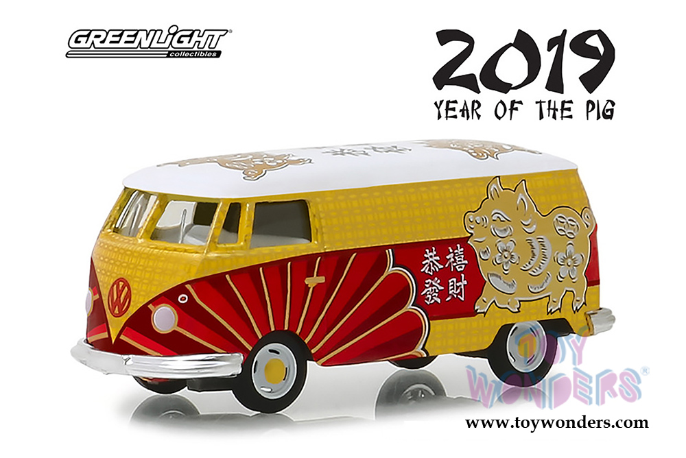 Greenlight - Volkswagen Type 2 Panel Van - Chinese Zodiac 2019 Year of the Pig (1/64 scale diecast model car, Yellow/Red) 29954/48