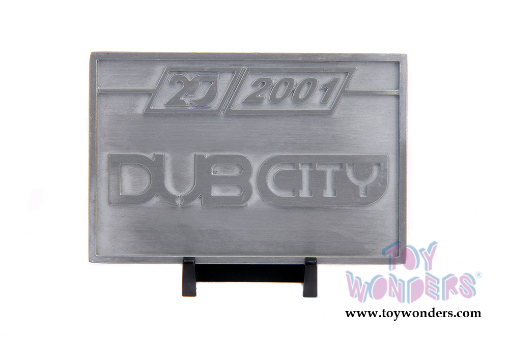 31077 Jada Toys - 20th Anniversary | DUB City 1999 Chevrolet® Silverado™ Dooley Pickup Truck. 1:24 scale diecast collectible model car. This Chevy® Truck is a 9.5"L x 4"W x 2.75"H diecast metal cars with openable doors and tailgate. Freewheeling and includes a two-sided diecast mosaic tile detailing the history of the brand. This car is manufactured by Jada Toys. It comes individually packed in a window box. Window Box is 12"L x 6"W x 4.5"H. Item 31077 is in Raw Metal.