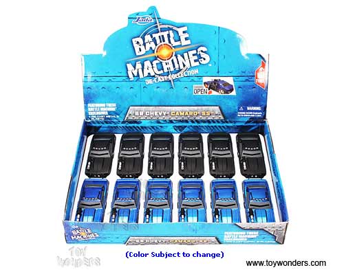 92378 Jada Toys Battle Machines - 1969 Chevy Camaro SS Hard Top #69. 1:32 scale diecast collectible model car. This Chevrolet Camaro SS is a 5.5"L x 2.25"W x 1.75"H die cast metal car with openable doors and free wheeling. This 1969 Chevy Camaro SS is manufactured by Jada Toys. 12 pcs per display box in assorted colors. GM is a trademark of the General Motors Corporation.