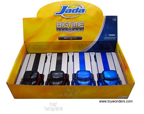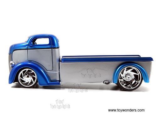 96234LF Jada Toys Bigtime Kustoms - 1947 Ford COE Flatbed. 1:24 scale diecast collectible model car. This Ford COE is a 9"L x 3.75"W x 3.25"H die-cast car with openable doors and sliding bed motion. Rims: Brentz Wheel Blade. Jada Toys Big Time. 4 pcs per display box in assorted colors.
