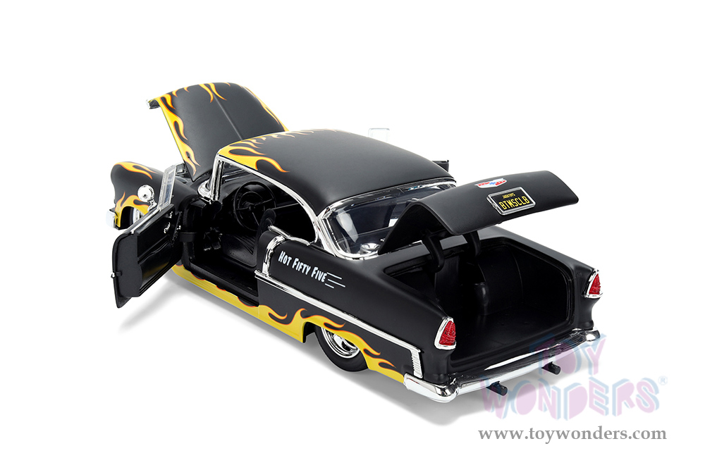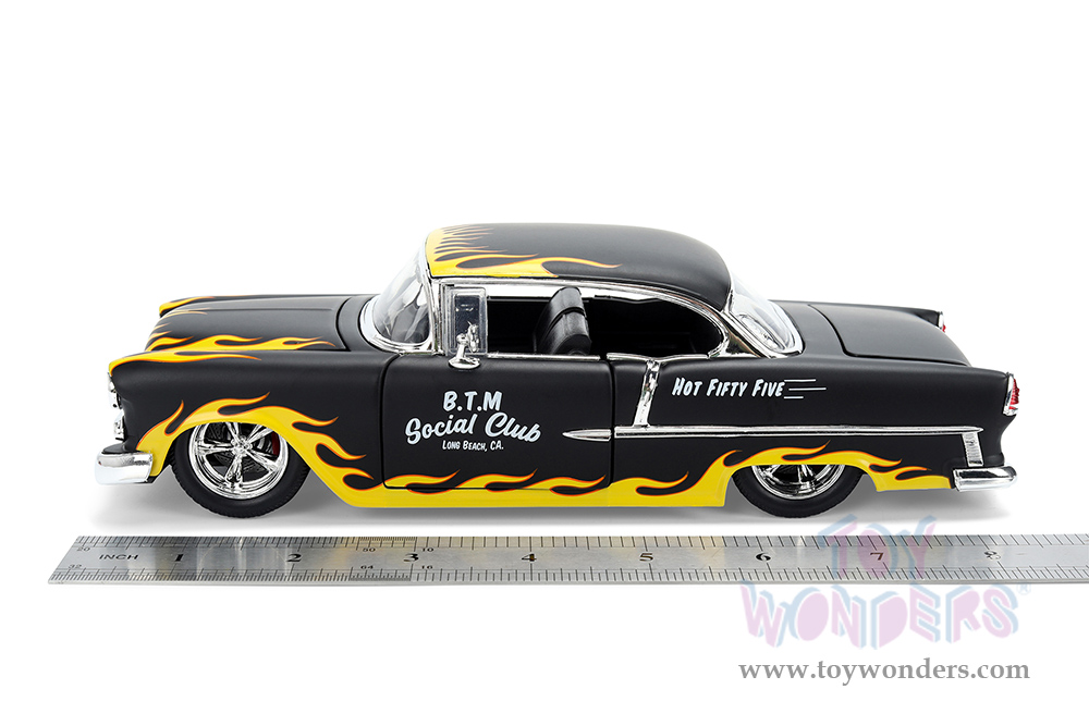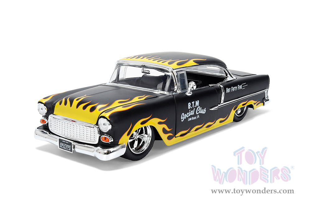 Jada Toys Bigtime Muscle - Chevrolet® Bel Air® "BTM Social Club" (1955, 1/24 scale diecast model car, Black/Yellow Flames) 36606