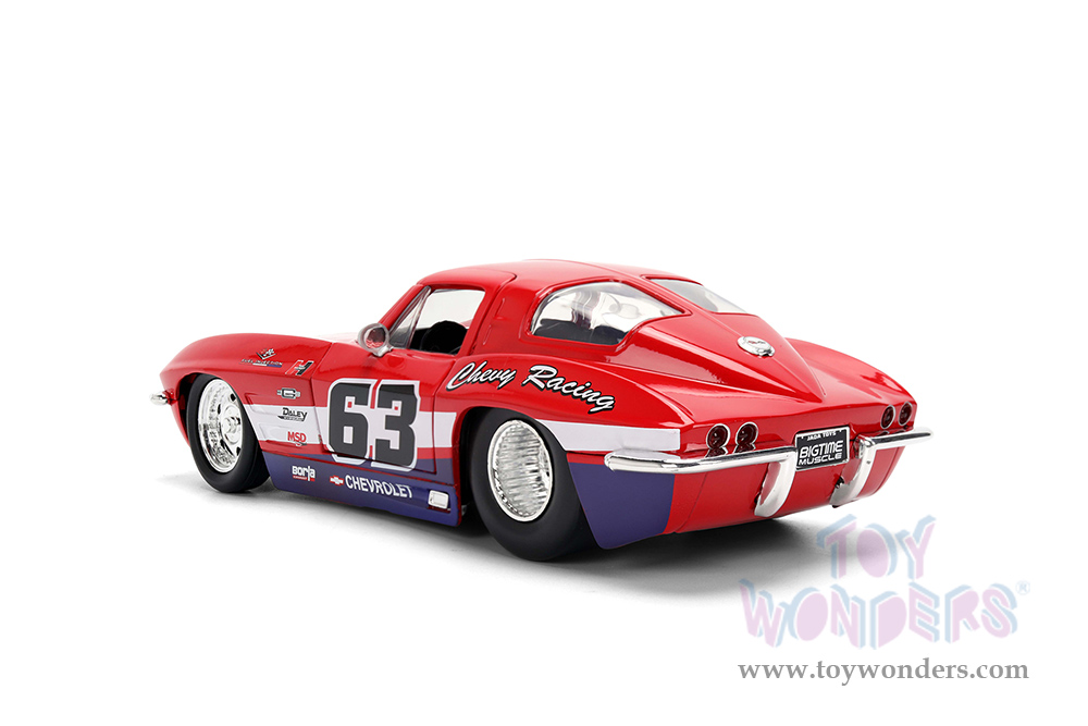 Jada Toys Bigtime Muscle - Chevrolet® Corvette® Stingray #63 - Chevy Racing (1963, 1/24 scale diecast model car, Red/White strips) 36594