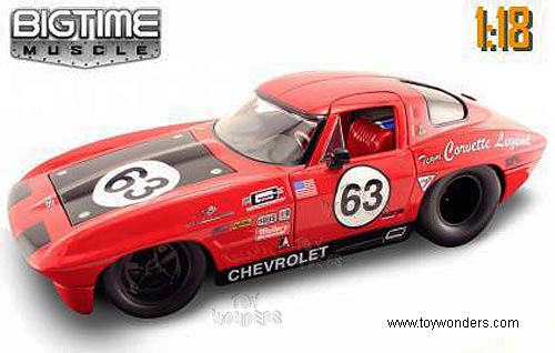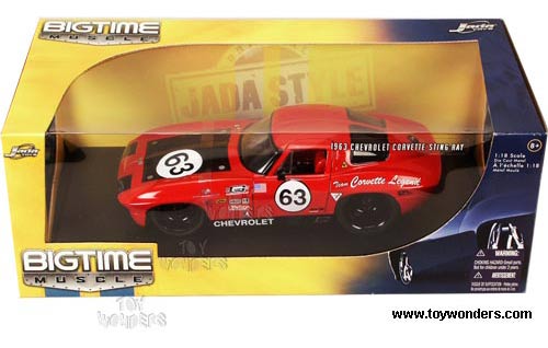 Jada Toys Bigtime Muscle - Chevrolet Corvette Stingray Hard Top (1963, 1/18 scale diecast model car, Red) 90327